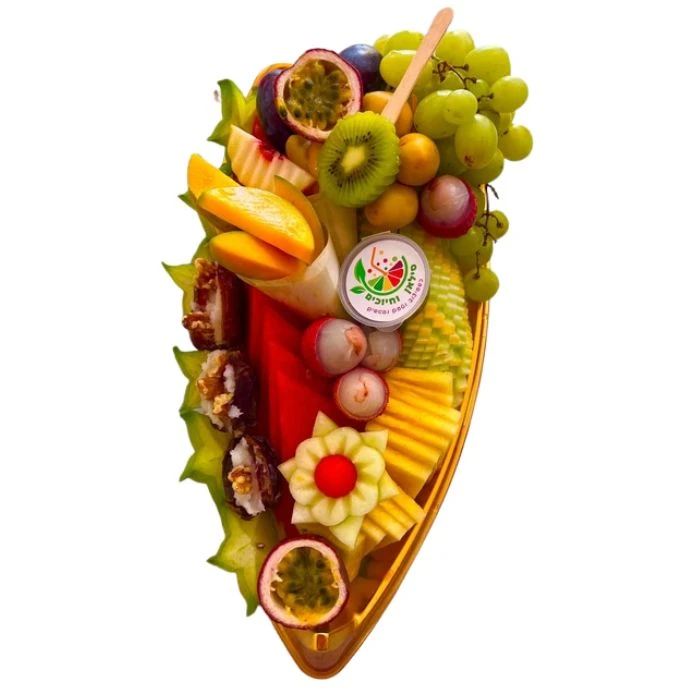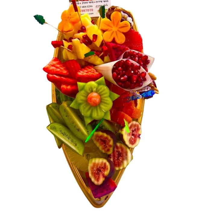 מכיל מעל 10 סוגי פירות העונה, נחתכים טרי בסמוך למשלוח.