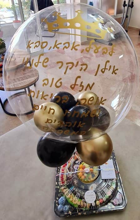 מגיע עם בלונים קטנים בתוכו ומחוצה לו